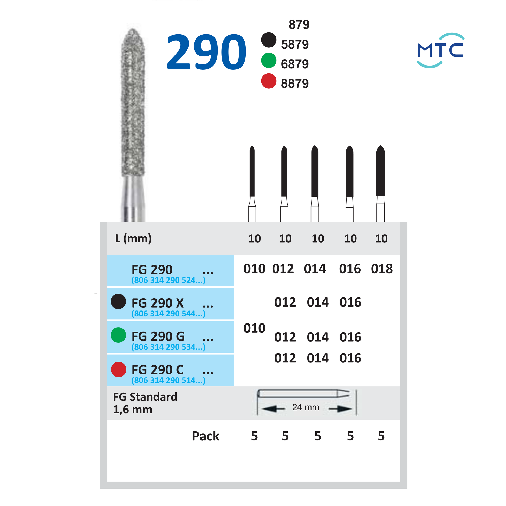 FISSURE with tapered end bur 290 - فشر مع نهاية منببة