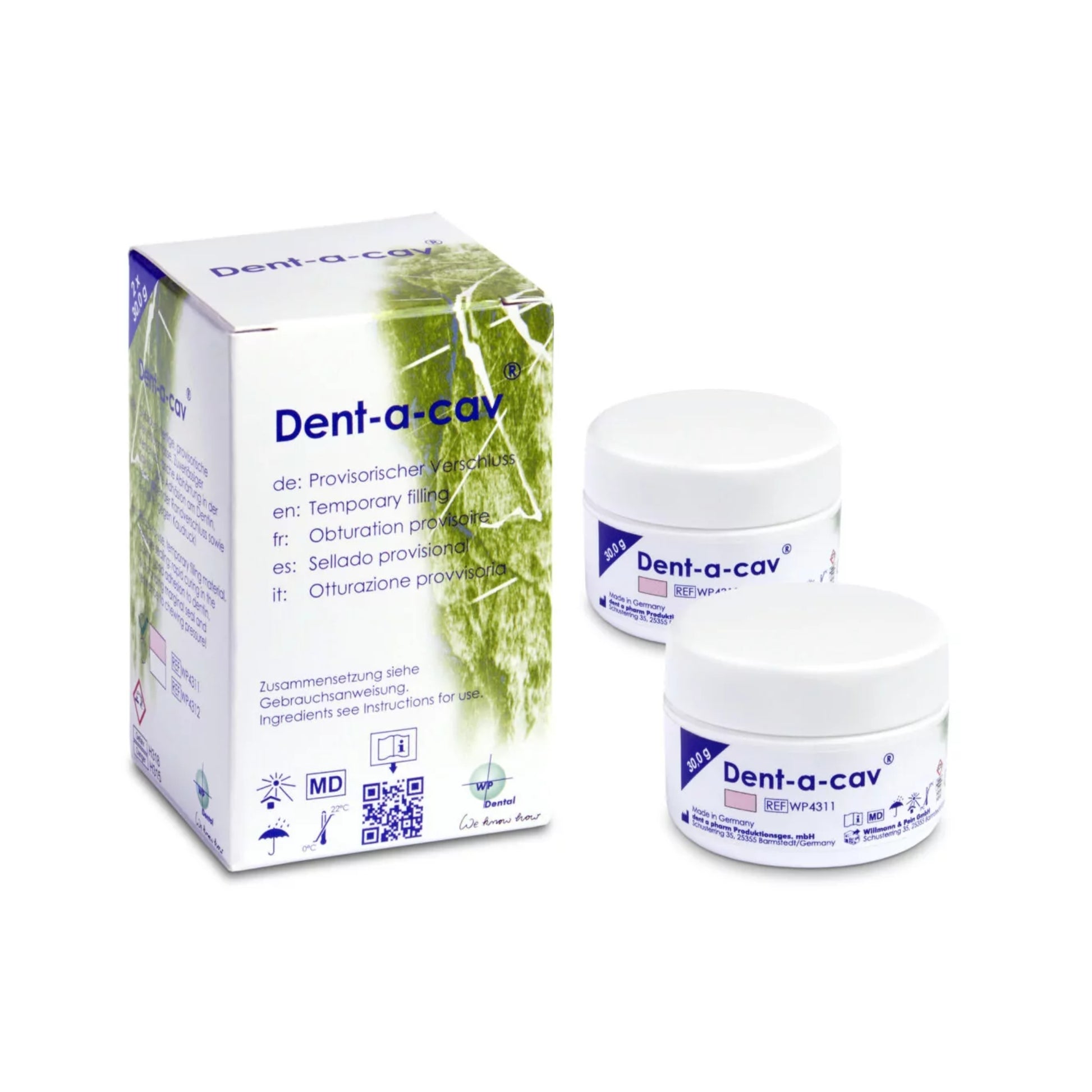 Dent-a-cav® is a temporary sealing compound which is available ready for use, optionally in white or pink. Dent-a-cav ensures rapid hardening in the cavity adheres well to dentin and enamel and provides excellent marginal seal. It can be easily removed with a probe. Dent-a-cav® also ensures a reliable seal due to its great resistance to masticatory pressure. Dent-a-cav® is gentle on pulp and gingiva, and since it does not contain eugenol, it does not interfere with a subsequent composite filling.